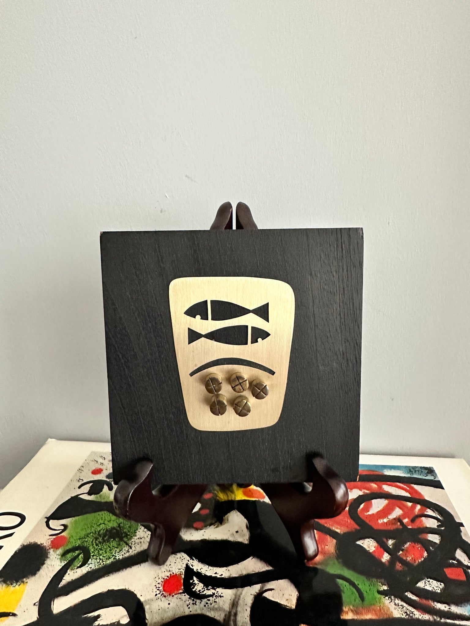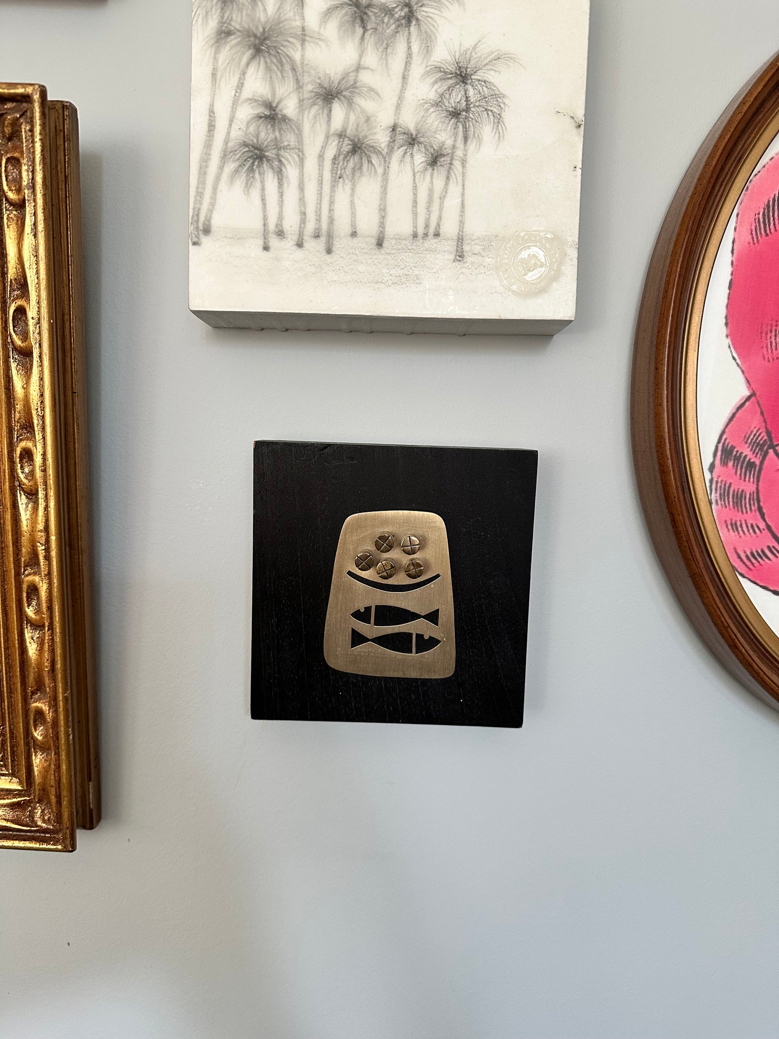 This is a Emaus Talleres Monasticos loaves and bread wall plaque that was made in Mexico. It can be hung on the wall, sit on an easel or sit as is. It is missing the hallmark on the back.